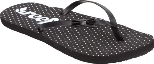 Reef Abbey flip flops. Faux leather upper with bow details. Cushioned footbed with polka dot print and Reef logo. Rubber outsole. Imported.